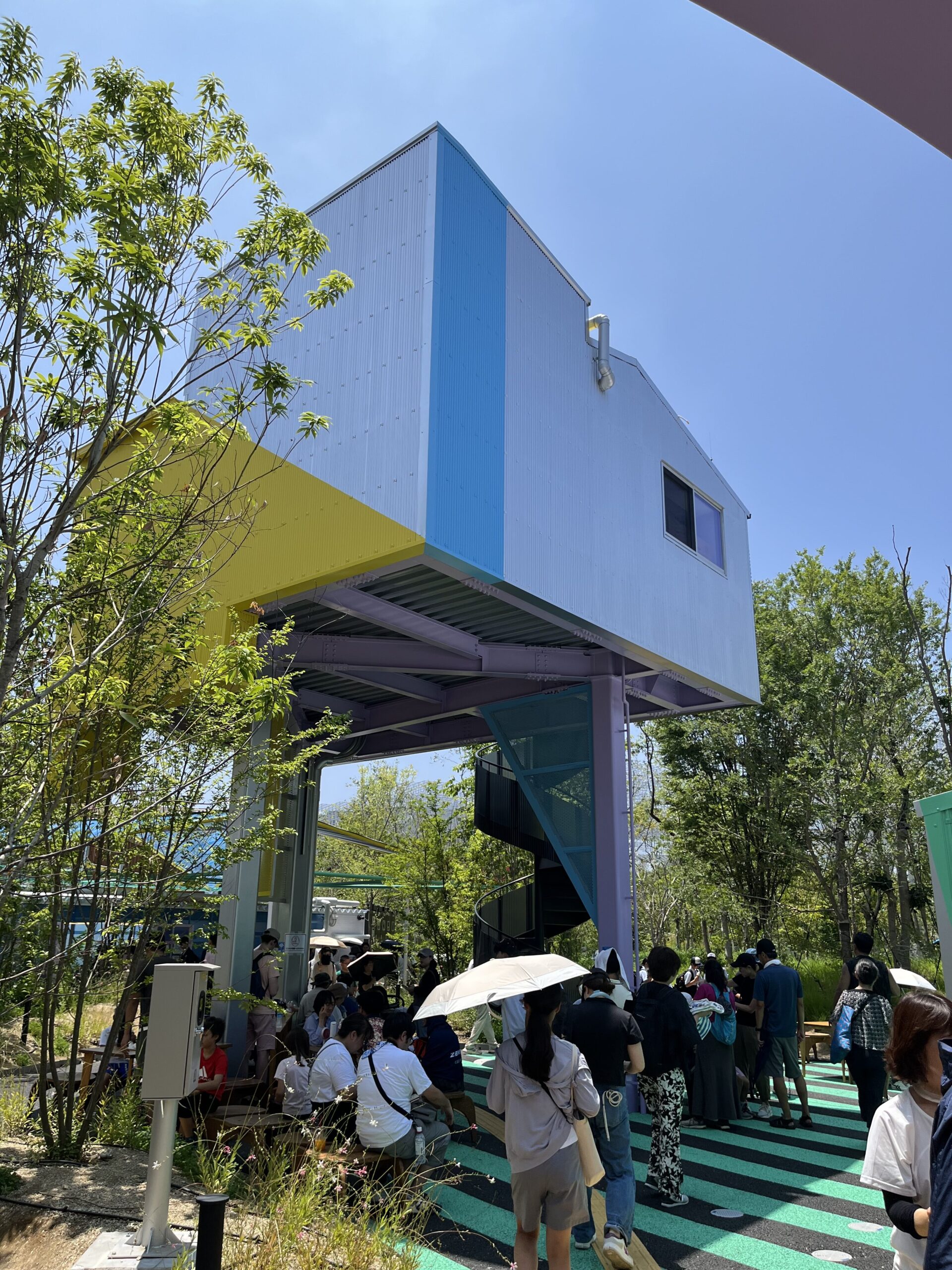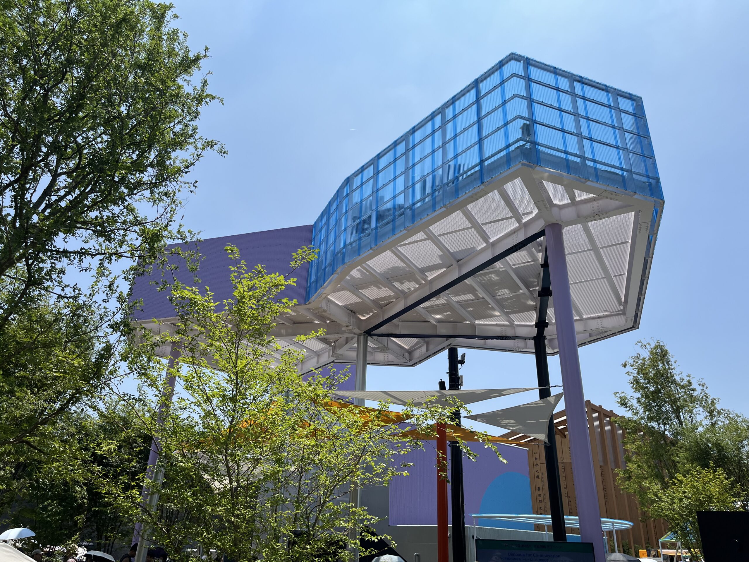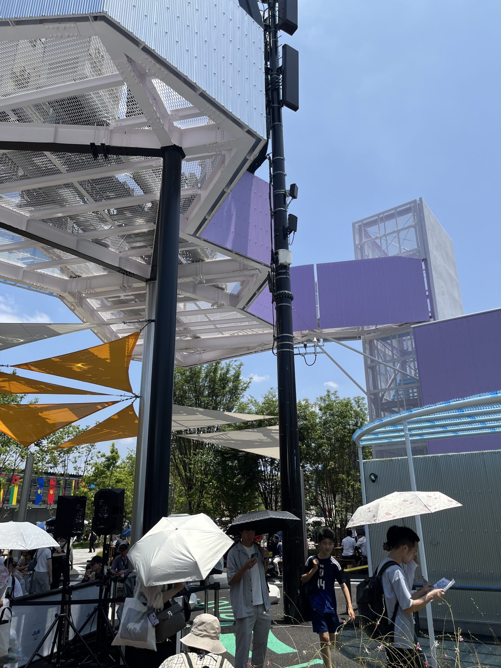 万博会場は日差しを遮る場所が少なく、休憩所はパビリオン巡りに疲れた足を休める重要なスポットです。
