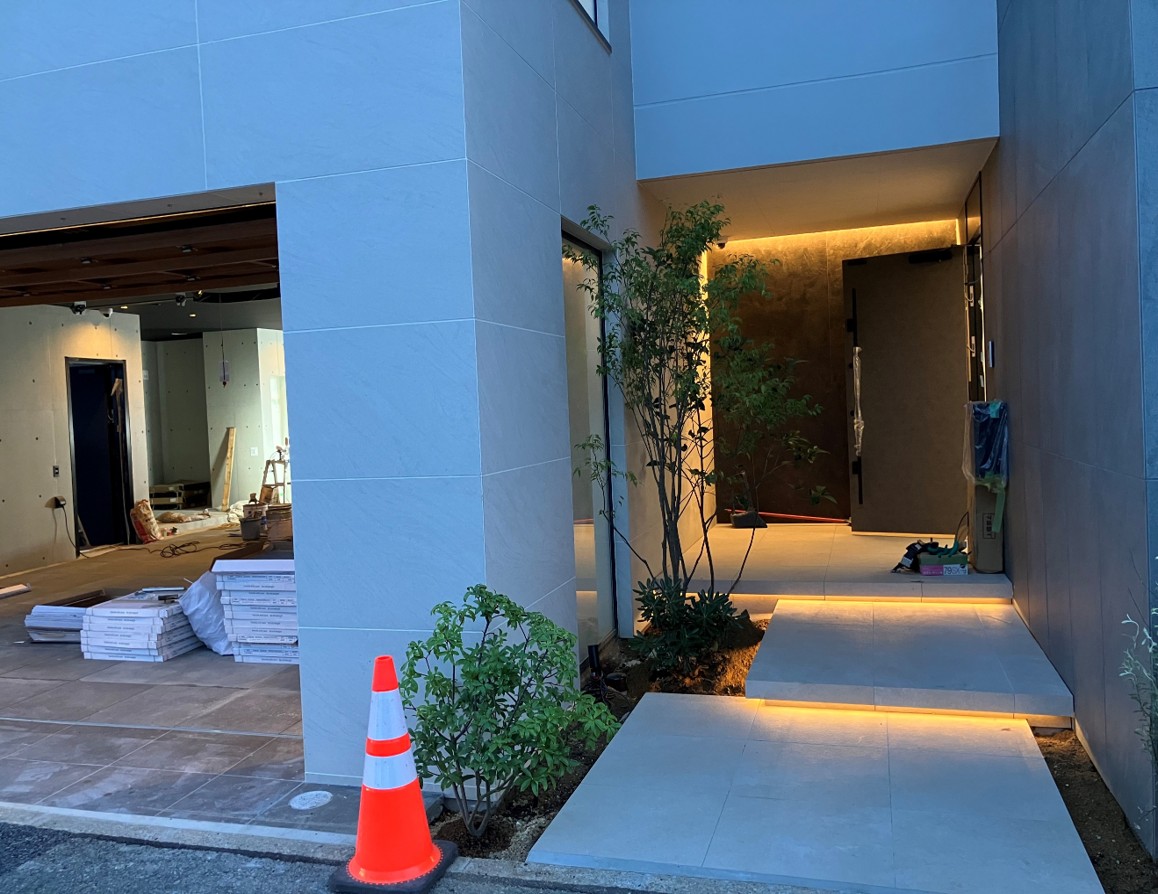 大判タイルは高価な材料ですがさまざまなサイズの石材や薄型タイルで施工出来ますし現場での施工性やメンテナンスの面でもこれからの現場で非常に有効な工法だと感じました。
