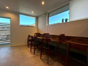 あれから20年の月日が経ち、今年の初めF様から「家を増築してカフェをやりたい」というお話を頂きました。当時、増築する事は想定に無く、現行法規との擦り合わせや既存建物との取り合いなど慎重に計画を進めて、この度「ちいさなカフェ 空色の丘」が誕生しました。カフェという新たな空間造りを、設計施工でもう一度ご縁を頂けた事に感謝しております。当面は土日の午前のみの開業との事です。