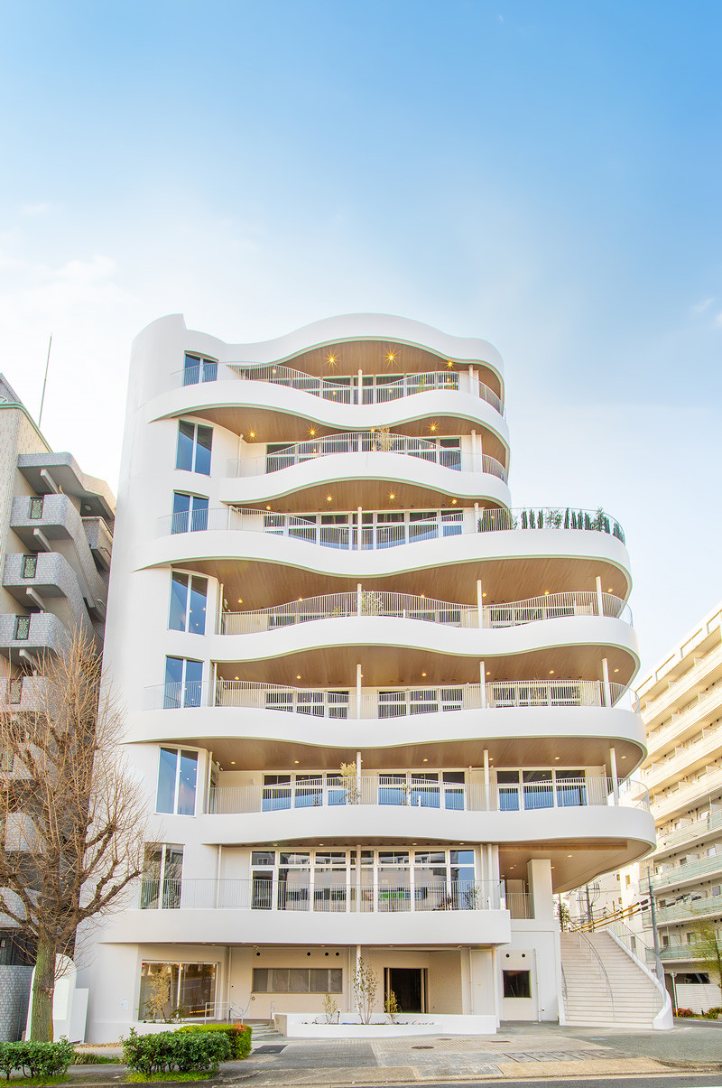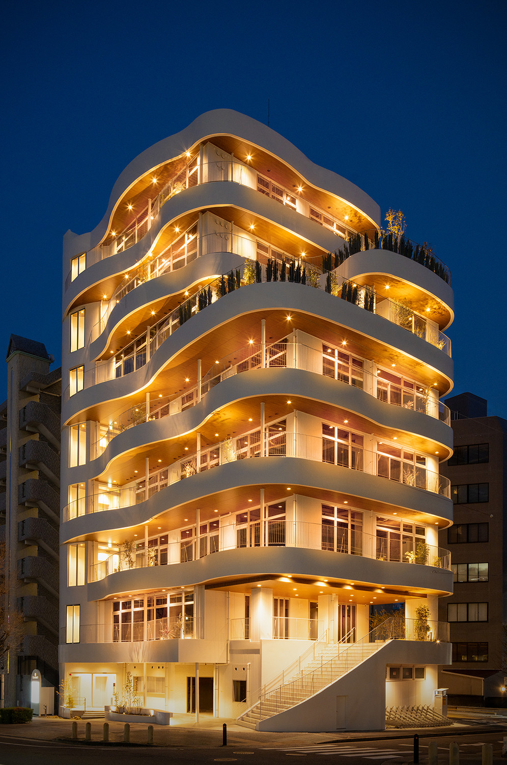 「大人の美」を追求したテナントビル。 美容、医療、食、健康。 都市に点在する「整う」を、ひとつの建築に重ねることからcoco totonoは生まれた。 感性に寄り添う、柔らかな曲線と植栽のファサード。 街に開かれた、癒しの拠点。